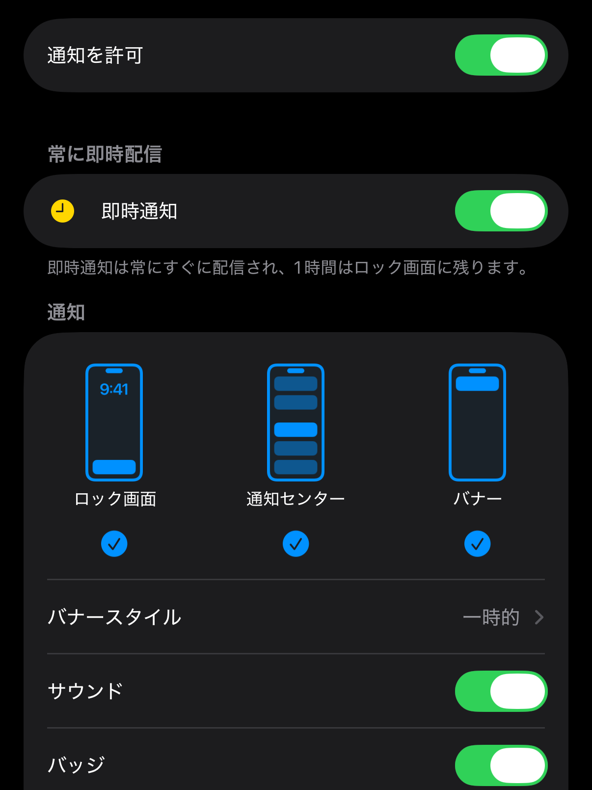これを表示するようにしたら通知が来るようになって、まず安心。